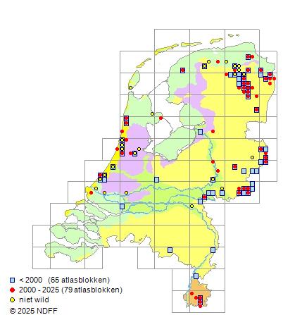 CC BY-NC-SA 3.0 NLVerspreidingNederlandZeldzaam in Drenthe en zeer zeldzaam in Groningen, in Twente, in de Achterhoek, in het rivierengebied (o.a. in het Geuldal in Zuid-Limburg) en aan de Hollandse binnenduinrand.