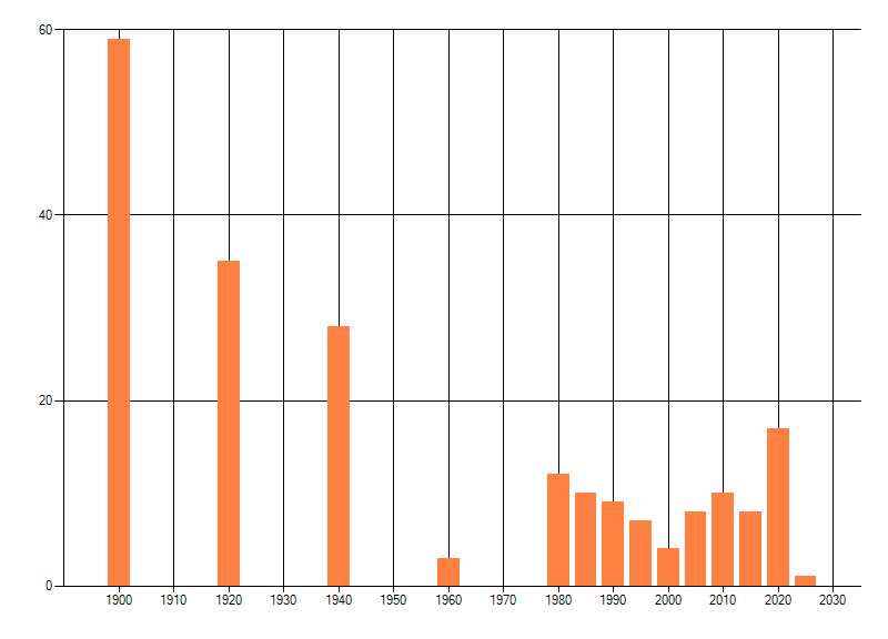 dus een trend in verspreiding kan hier niet direct uit worden afgelezen. Het opgegeven jaartal is het eerste jaar van de