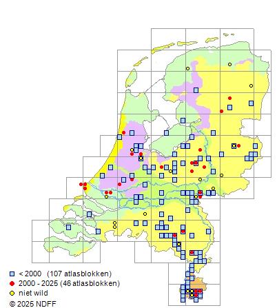 Bron: FLORON - Gemodelleerd op basis van waarnemingen uit de NDFF voor de periode 2000-2021.