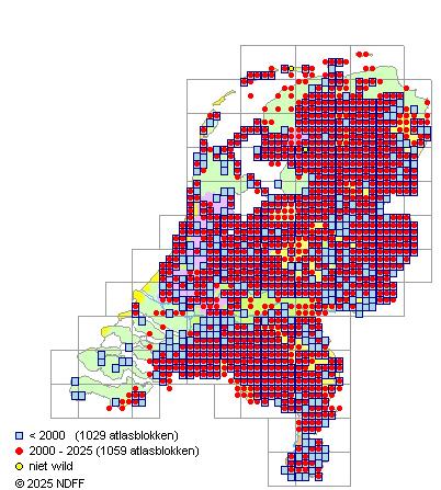 Bron: FLORON - Gemodelleerd op basis van waarnemingen uit de NDFF voor de periode 2000-2021.