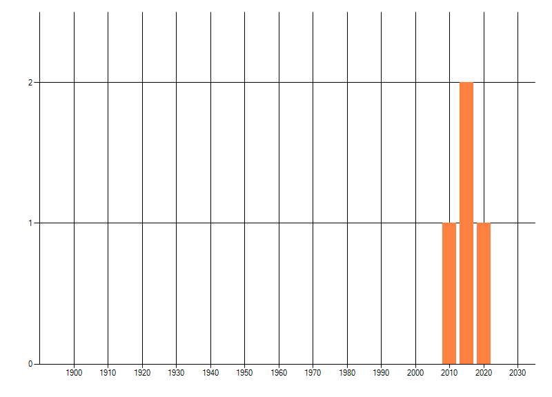 Het aantal atlasblokken (5x5 km) waarin de soort is gemeld binnen een periode van vijf jaar (vanaf 1980) of twintig jaar. Niet gecorrigeerd voor waarnemersinspanning en het aantal doorgegeven waarnemingen kan sterk variëren per periode, dus een trend in verspreiding kan hier niet direct uit worden afgelezen. Het opgegeven jaartal is het eerste jaar van de periode. Bron: gevalideerde waarnemingen uit de NDFF.