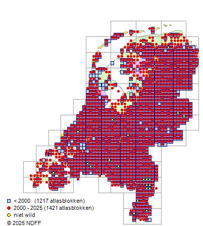 CC BY-NC-SA 3.0 NLVerspreidingNederlandVrij algemeen, maar zeldzaam op de Waddeneilanden, in Zeeland, het noordelijk zeekleigebied en in Flevoland. Ingeburgerd sinds 1863.