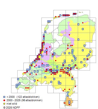 Bron: FLORON - Gemodelleerd op basis van waarnemingen uit de NDFF voor de periode 2000-2021.