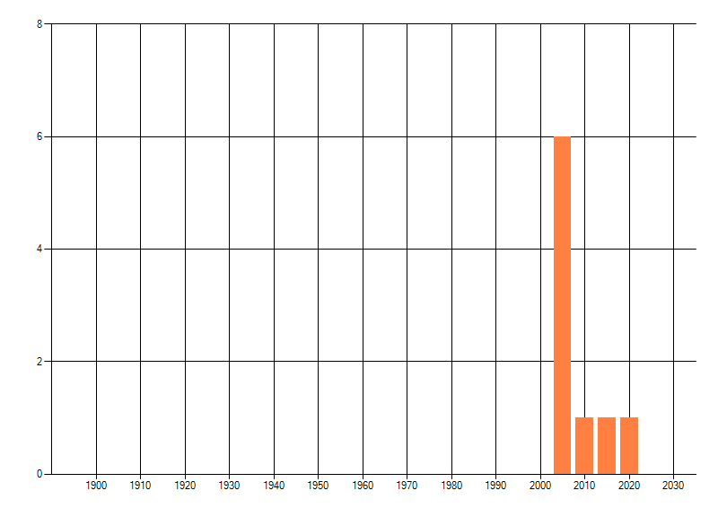Het aantal atlasblokken (5x5 km) waarin de soort is gemeld binnen een periode van vijf jaar (vanaf 1980) of twintig jaar. Niet gecorrigeerd voor waarnemersinspanning en het aantal doorgegeven waarnemingen kan sterk variëren per periode, dus een trend in verspreiding kan hier niet direct uit worden afgelezen. Het opgegeven jaartal is het eerste jaar van de periode. Bron: gevalideerde waarnemingen uit de NDFF.