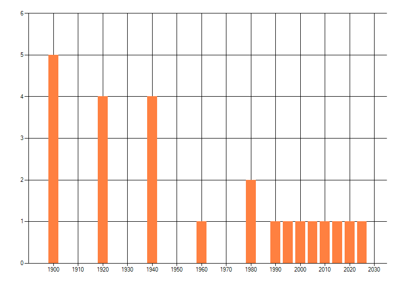 Het aantal atlasblokken (5x5 km) waarin de soort is gemeld binnen een periode van vijf jaar (vanaf 1980) of twintig jaar. Niet gecorrigeerd voor waarnemersinspanning en het aantal doorgegeven waarnemingen kan sterk variëren per periode, dus een trend in verspreiding kan hier niet direct uit worden afgelezen. Het opgegeven jaartal is het eerste jaar van de periode. Bron: gevalideerde waarnemingen uit de NDFF.