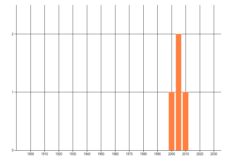 Het aantal atlasblokken (5x5 km) waarin de soort is gemeld binnen een periode van vijf jaar (vanaf 1980) of twintig jaar. Niet gecorrigeerd voor waarnemersinspanning en het aantal doorgegeven waarnemingen kan sterk variëren per periode, dus een trend in verspreiding kan hier niet direct uit worden afgelezen. Het opgegeven jaartal is het eerste jaar van de periode. Bron: gevalideerde waarnemingen uit de NDFF.