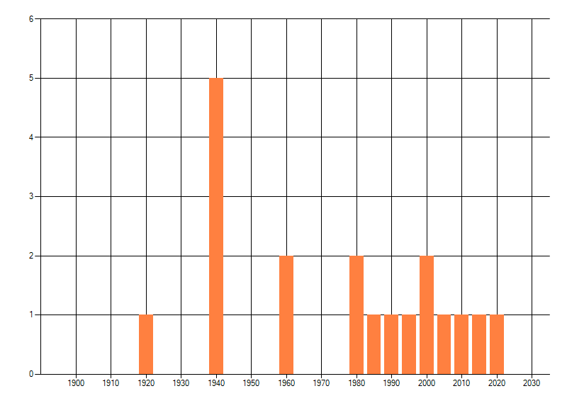 Het aantal atlasblokken (5x5 km) waarin de soort is gemeld binnen een periode van vijf jaar (vanaf 1980) of twintig jaar. Niet gecorrigeerd voor waarnemersinspanning en het aantal doorgegeven waarnemingen kan sterk variëren per periode, dus een trend in verspreiding kan hier niet direct uit worden afgelezen. Het opgegeven jaartal is het eerste jaar van de periode. Bron: gevalideerde waarnemingen uit de NDFF.