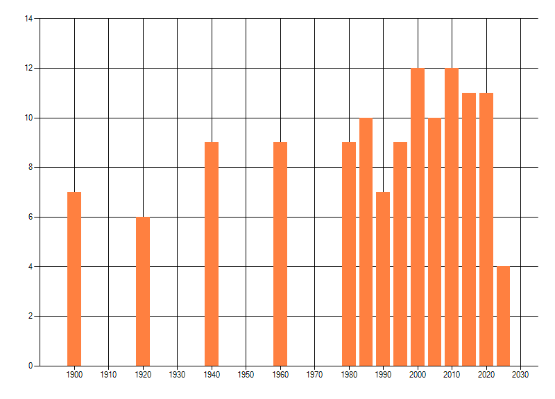 dus een trend in verspreiding kan hier niet direct uit worden afgelezen. Het opgegeven jaartal is het eerste jaar van de