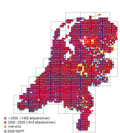 CC BY-NC-SA 3.0 NLVerspreidingNederlandAlgemeen in kleigebieden en in zuidelijk Nederland en vrij zeldzaam in het oosten en midden van het land.