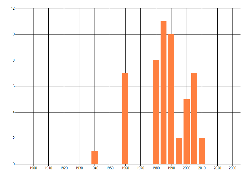 Het aantal atlasblokken (5x5 km) waarin de soort is gemeld binnen een periode van vijf jaar (vanaf 1980) of twintig jaar. Niet gecorrigeerd voor waarnemersinspanning en het aantal doorgegeven waarnemingen kan sterk variëren per periode, dus een trend in verspreiding kan hier niet direct uit worden afgelezen. Het opgegeven jaartal is het eerste jaar van de periode. Bron: gevalideerde waarnemingen uit de NDFF.