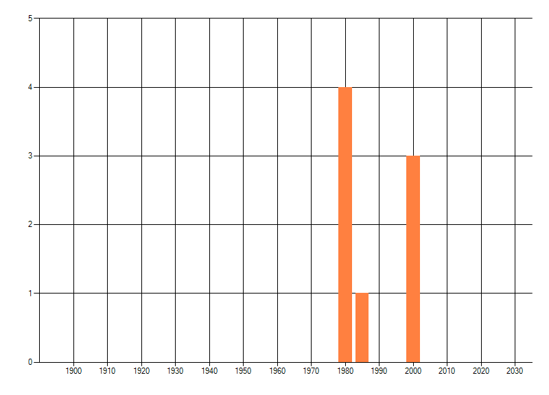 Het aantal atlasblokken (5x5 km) waarin de soort is gemeld binnen een periode van vijf jaar (vanaf 1980) of twintig jaar. Niet gecorrigeerd voor waarnemersinspanning en het aantal doorgegeven waarnemingen kan sterk variëren per periode, dus een trend in verspreiding kan hier niet direct uit worden afgelezen. Het opgegeven jaartal is het eerste jaar van de periode. Bron: gevalideerde waarnemingen uit de NDFF.