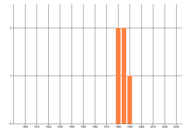 Het aantal atlasblokken (5x5 km) waarin de soort is gemeld binnen een periode van vijf jaar (vanaf 1980) of twintig jaar. Niet gecorrigeerd voor waarnemersinspanning en het aantal doorgegeven waarnemingen kan sterk variëren per periode, dus een trend in verspreiding kan hier niet direct uit worden afgelezen. Het opgegeven jaartal is het eerste jaar van de periode. Bron: gevalideerde waarnemingen uit de NDFF.