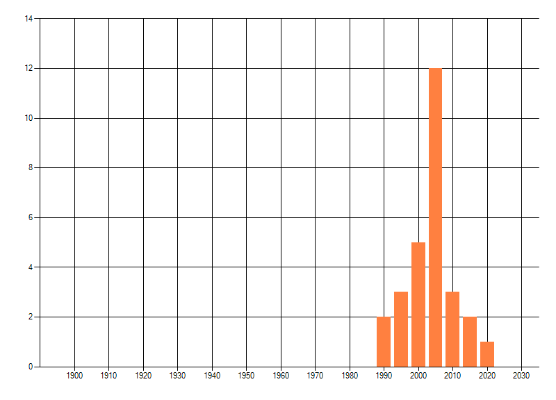 Het aantal atlasblokken (5x5 km) waarin de soort is gemeld binnen een periode van vijf jaar (vanaf 1980) of twintig jaar. Niet gecorrigeerd voor waarnemersinspanning en het aantal doorgegeven waarnemingen kan sterk variëren per periode, dus een trend in verspreiding kan hier niet direct uit worden afgelezen. Het opgegeven jaartal is het eerste jaar van de periode. Bron: gevalideerde waarnemingen uit de NDFF.