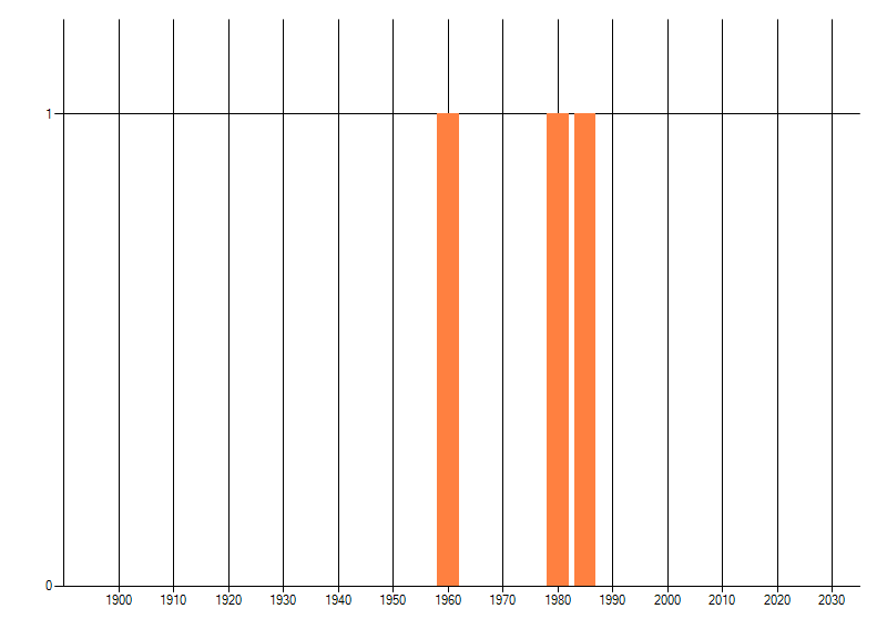 Het aantal atlasblokken (5x5 km) waarin de soort is gemeld binnen een periode van vijf jaar (vanaf 1980) of twintig jaar. Niet gecorrigeerd voor waarnemersinspanning en het aantal doorgegeven waarnemingen kan sterk variëren per periode, dus een trend in verspreiding kan hier niet direct uit worden afgelezen. Het opgegeven jaartal is het eerste jaar van de periode. Bron: gevalideerde waarnemingen uit de NDFF.