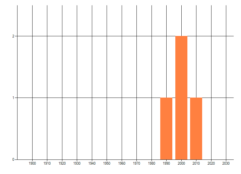 Het aantal atlasblokken (5x5 km) waarin de soort is gemeld binnen een periode van vijf jaar (vanaf 1980) of twintig jaar. Niet gecorrigeerd voor waarnemersinspanning en het aantal doorgegeven waarnemingen kan sterk variëren per periode, dus een trend in verspreiding kan hier niet direct uit worden afgelezen. Het opgegeven jaartal is het eerste jaar van de periode. Bron: gevalideerde waarnemingen uit de NDFF.