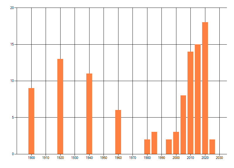 dus een trend in verspreiding kan hier niet direct uit worden afgelezen. Het opgegeven jaartal is het eerste jaar van de