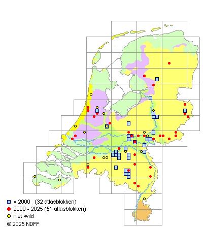 Bron: FLORON - Gemodelleerd op basis van waarnemingen uit de NDFF voor de periode 2000-2021.