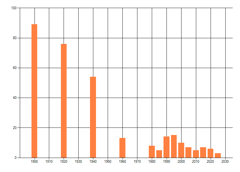 dus een trend in verspreiding kan hier niet direct uit worden afgelezen. Het opgegeven jaartal is het eerste jaar van de