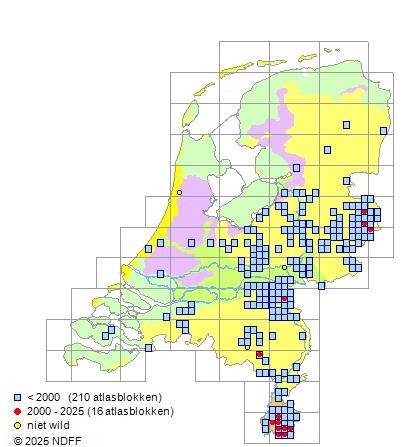 CC BY-NC-SA 3.0 NLVerspreidingNederlandZeldzaam in Zuid-Limburg en zeer zeldzaam in de rest van Limburg en in het oosten en midden van het land.
