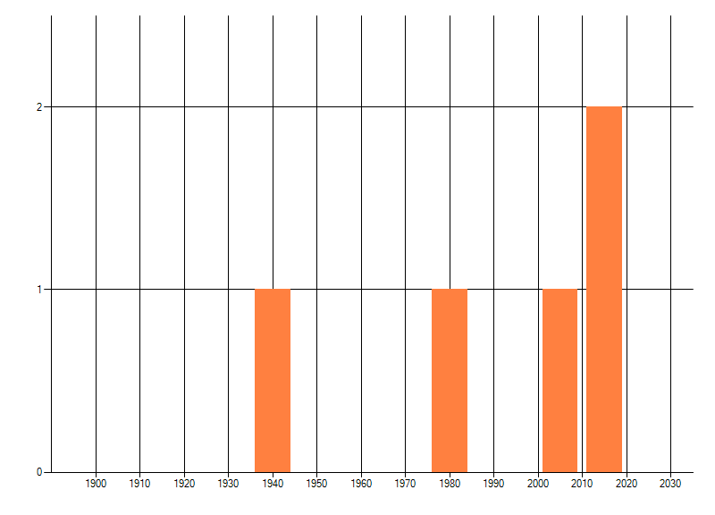 Het aantal atlasblokken (5x5 km) waarin de soort is gemeld binnen een periode van vijf jaar (vanaf 1980) of twintig jaar. Niet gecorrigeerd voor waarnemersinspanning en het aantal doorgegeven waarnemingen kan sterk variëren per periode, dus een trend in verspreiding kan hier niet direct uit worden afgelezen. Het opgegeven jaartal is het eerste jaar van de periode. Bron: gevalideerde waarnemingen uit de NDFF.
