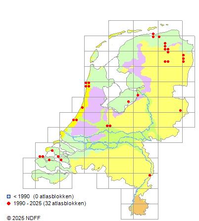 Het opgegeven jaartal is het eerste jaar van de periode. Bron: gevalideerde waarnemingen uit de NDFF.