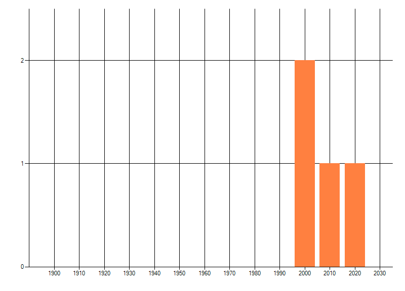 Het aantal atlasblokken (5x5 km) waarin de soort is gemeld binnen een periode van vijf jaar (vanaf 1980) of twintig jaar. Niet gecorrigeerd voor waarnemersinspanning en het aantal doorgegeven waarnemingen kan sterk variëren per periode, dus een trend in verspreiding kan hier niet direct uit worden afgelezen. Het opgegeven jaartal is het eerste jaar van de periode. Bron: gevalideerde waarnemingen uit de NDFF.