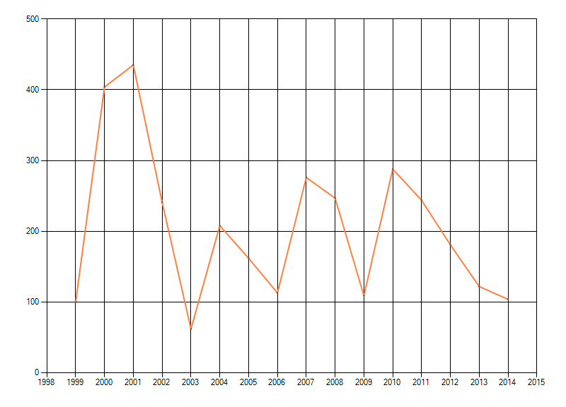 Trend in het geschatte aantal individuen van paddenstoelen in bossen op de hoge zandgronden, weergegeven als indexcijfer (eerste jaar = 100). Bron: