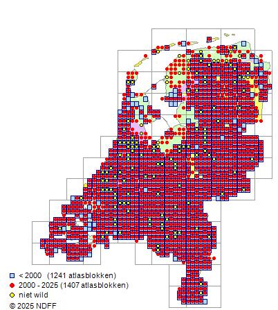 De trend is gecorrigeerd voor waarnemersinspanning en geeft de relatieve verandering in het aantal bezette kilometerhokken weer.