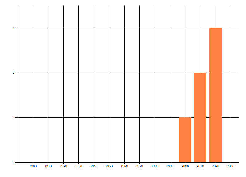 Het aantal atlasblokken (5x5 km) waarin de soort is gemeld binnen een periode van vijf jaar (vanaf 1980) of twintig jaar. Niet gecorrigeerd voor waarnemersinspanning en het aantal doorgegeven waarnemingen kan sterk variëren per periode, dus een trend in verspreiding kan hier niet direct uit worden afgelezen. Het opgegeven jaartal is het eerste jaar van de periode. Bron: gevalideerde waarnemingen uit de NDFF.