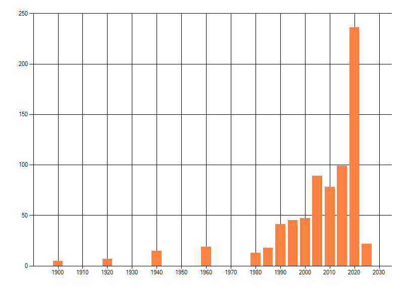 Het aantal atlasblokken (5x5 km) waarin de soort is gemeld binnen een periode van vijf jaar (vanaf 1980) of twintig jaar. Niet gecorrigeerd voor waarnemersinspanning en het aantal doorgegeven waarnemingen kan sterk variëren per periode, dus een trend in verspreiding kan hier niet direct uit worden afgelezen. Het opgegeven jaartal is het eerste jaar van de periode. Bron: gevalideerde waarnemingen uit de NDFF.