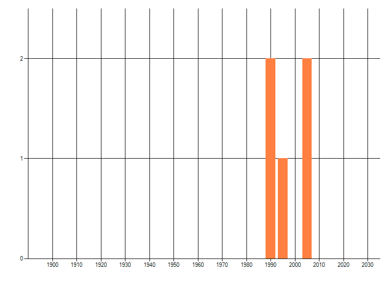 Het aantal atlasblokken (5x5 km) waarin de soort is gemeld binnen een periode van vijf jaar (vanaf 1980) of twintig jaar. Niet gecorrigeerd voor waarnemersinspanning en het aantal doorgegeven waarnemingen kan sterk variëren per periode, dus een trend in verspreiding kan hier niet direct uit worden afgelezen. Het opgegeven jaartal is het eerste jaar van de periode. Bron: gevalideerde waarnemingen uit de NDFF.