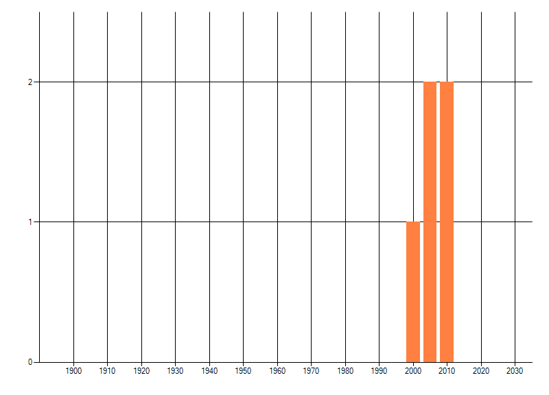 Het aantal atlasblokken (5x5 km) waarin de soort is gemeld binnen een periode van vijf jaar (vanaf 1980) of twintig jaar. Niet gecorrigeerd voor waarnemersinspanning en het aantal doorgegeven waarnemingen kan sterk variëren per periode, dus een trend in verspreiding kan hier niet direct uit worden afgelezen. Het opgegeven jaartal is het eerste jaar van de periode. Bron: gevalideerde waarnemingen uit de NDFF.