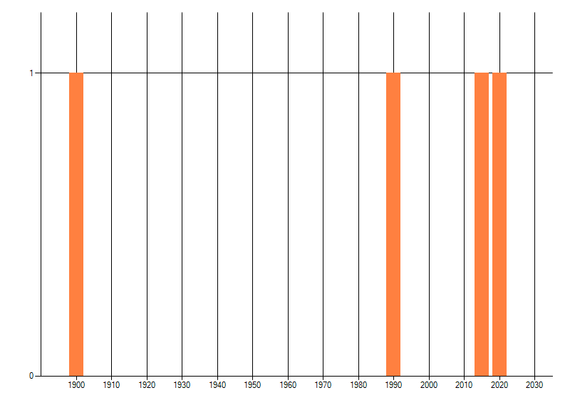 Het aantal atlasblokken (5x5 km) waarin de soort is gemeld binnen een periode van vijf jaar (vanaf 1980) of twintig jaar. Niet gecorrigeerd voor waarnemersinspanning en het aantal doorgegeven waarnemingen kan sterk variëren per periode, dus een trend in verspreiding kan hier niet direct uit worden afgelezen. Het opgegeven jaartal is het eerste jaar van de periode. Bron: gevalideerde waarnemingen uit de NDFF.