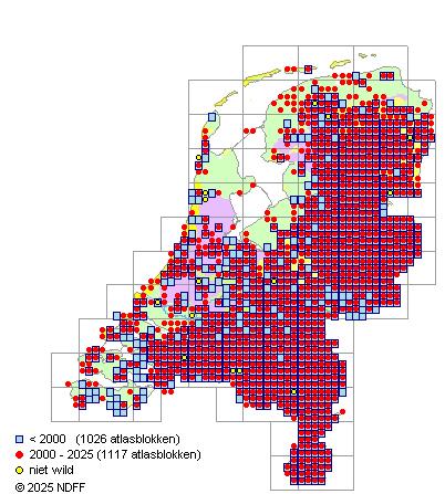 Bron: FLORON - Gemodelleerd op basis van waarnemingen uit de NDFF voor de periode 2000-2021.