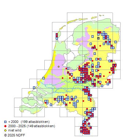 Bron: FLORON - Gemodelleerd op basis van waarnemingen uit de NDFF voor de periode 2000-2021.