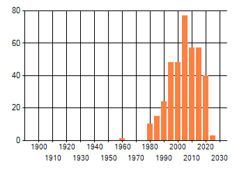 Het aantal atlasblokken (5x5 km) waarin de soort is gemeld binnen een periode van vijf jaar (vanaf 1980) of twintig jaar.
