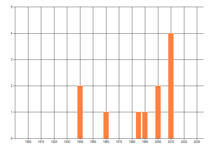 Het aantal atlasblokken (5x5 km) waarin de soort is gemeld binnen een periode van vijf jaar (vanaf 1980) of twintig jaar. Niet gecorrigeerd voor waarnemersinspanning en het aantal doorgegeven waarnemingen kan sterk variëren per periode, dus een trend in verspreiding kan hier niet direct uit worden afgelezen. Het opgegeven jaartal is het eerste jaar van de periode. Bron: gevalideerde waarnemingen uit de NDFF.