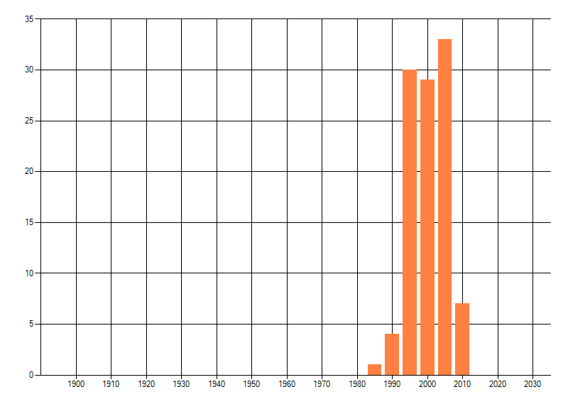 Het aantal atlasblokken (5x5 km) waarin de soort is gemeld binnen een periode van vijf jaar (vanaf 1980) of twintig jaar. Niet gecorrigeerd voor waarnemersinspanning en het aantal doorgegeven waarnemingen kan sterk variëren per periode, dus een trend in verspreiding kan hier niet direct uit worden afgelezen. Het opgegeven jaartal is het eerste jaar van de periode. Bron: gevalideerde waarnemingen uit de NDFF.