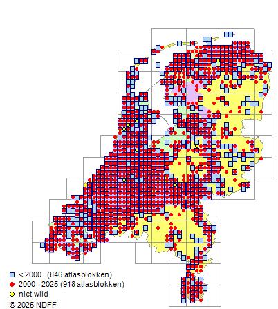 CC BY-NC-SA 3.0 NLVerspreidingNederlandVrij algemeen in het rivierengebied, in het westen van het land (zeeklei- en laagveengebieden) en in de Hollandse duinen en zeer zeldzaam in het oosten en midden van het land en in Zuid-Limburg.
