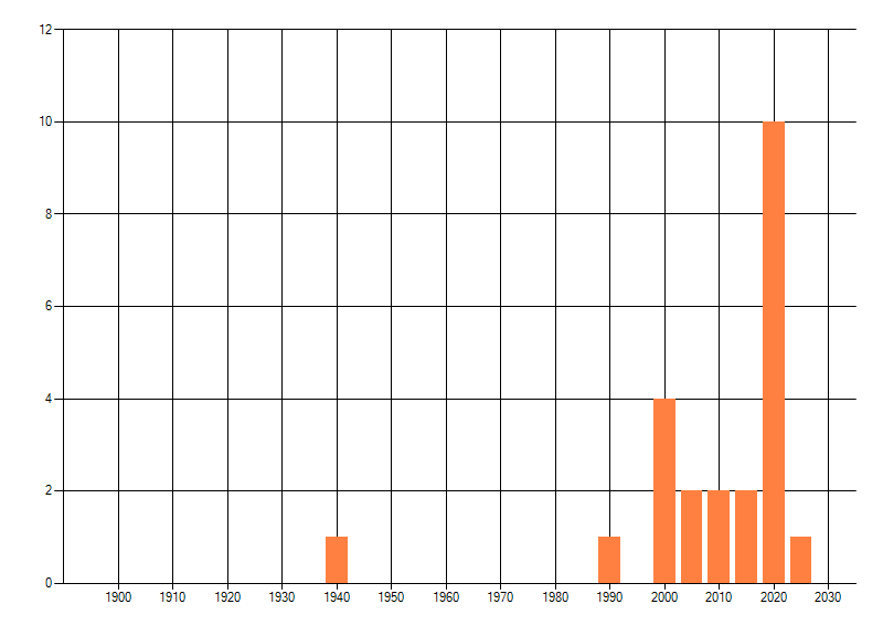 Het aantal atlasblokken (5x5 km) waarin de soort is gemeld binnen een periode van vijf jaar (vanaf 1980) of twintig jaar. Niet gecorrigeerd voor waarnemersinspanning en het aantal doorgegeven waarnemingen kan sterk variëren per periode, dus een trend in verspreiding kan hier niet direct uit worden afgelezen. Het opgegeven jaartal is het eerste jaar van de periode. Bron: gevalideerde waarnemingen uit de NDFF.