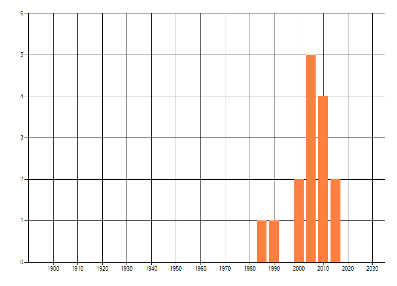 Het aantal atlasblokken (5x5 km) waarin de soort is gemeld binnen een periode van vijf jaar (vanaf 1980) of twintig jaar. Niet gecorrigeerd voor waarnemersinspanning en het aantal doorgegeven waarnemingen kan sterk variëren per periode, dus een trend in verspreiding kan hier niet direct uit worden afgelezen. Het opgegeven jaartal is het eerste jaar van de periode. Bron: gevalideerde waarnemingen uit de NDFF.
