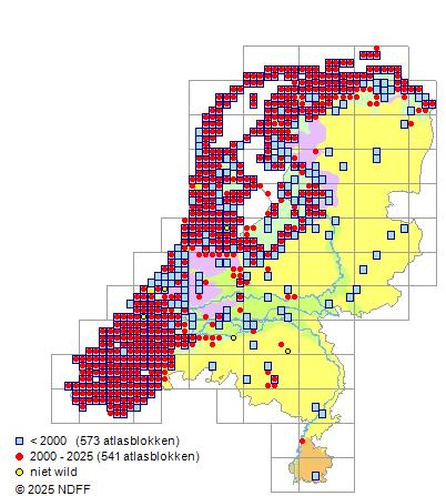 CC BY-NC-SA 3.0 NLVerspreidingNederlandVrij algemeen langs de kust in het Waddengebied, in Zeeland en in de duinen en plaatselijk vrij algemeen in Noord-Holland ten noorden van het IJ, in het zuidwestelijke deel van Zuid-Holland, in het noordelijk zeekleigebied en langs het IJsselmeer. Elders zeer zeldzaam.