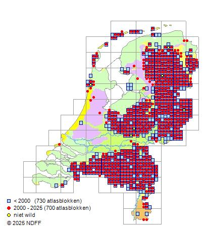 Bron: FLORON - Gemodelleerd op basis van waarnemingen uit de NDFF voor de periode 2000-2021.