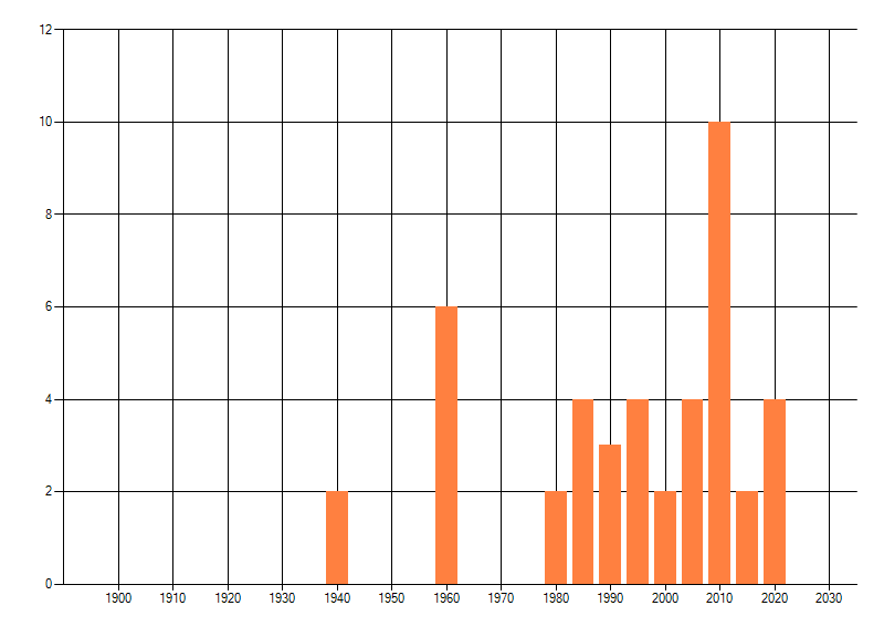 Het aantal atlasblokken (5x5 km) waarin de soort is gemeld binnen een periode van vijf jaar (vanaf 1980) of twintig jaar. Niet gecorrigeerd voor waarnemersinspanning en het aantal doorgegeven waarnemingen kan sterk variëren per periode, dus een trend in verspreiding kan hier niet direct uit worden afgelezen. Het opgegeven jaartal is het eerste jaar van de periode. Bron: gevalideerde waarnemingen uit de NDFF.