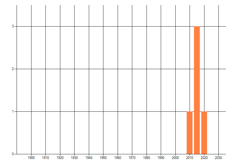 Het aantal atlasblokken (5x5 km) waarin de soort is gemeld binnen een periode van vijf jaar (vanaf 1980) of twintig jaar. Niet gecorrigeerd voor waarnemersinspanning en het aantal doorgegeven waarnemingen kan sterk variëren per periode, dus een trend in verspreiding kan hier niet direct uit worden afgelezen. Het opgegeven jaartal is het eerste jaar van de periode. Bron: gevalideerde waarnemingen uit de NDFF.