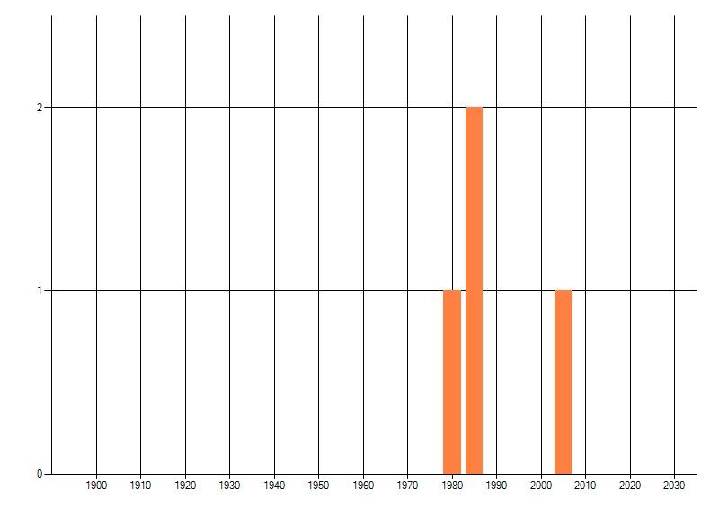 Het aantal atlasblokken (5x5 km) waarin de soort is gemeld binnen een periode van vijf jaar (vanaf 1980) of twintig jaar. Niet gecorrigeerd voor waarnemersinspanning en het aantal doorgegeven waarnemingen kan sterk variëren per periode, dus een trend in verspreiding kan hier niet direct uit worden afgelezen. Het opgegeven jaartal is het eerste jaar van de periode. Bron: gevalideerde waarnemingen uit de NDFF.