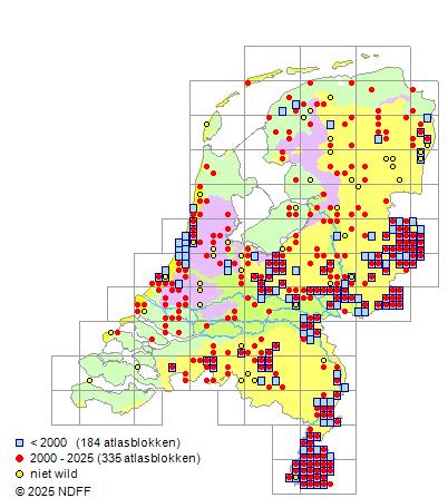 CC BY-NC-SA 3.0 NLVerspreidingNederlandVrij algemeen in Zuid-Limburg, Twente en de Achterhoek, vrij zeldzaam in Noord-Brabant en in het Midden-Nederlandse rivierengebied.