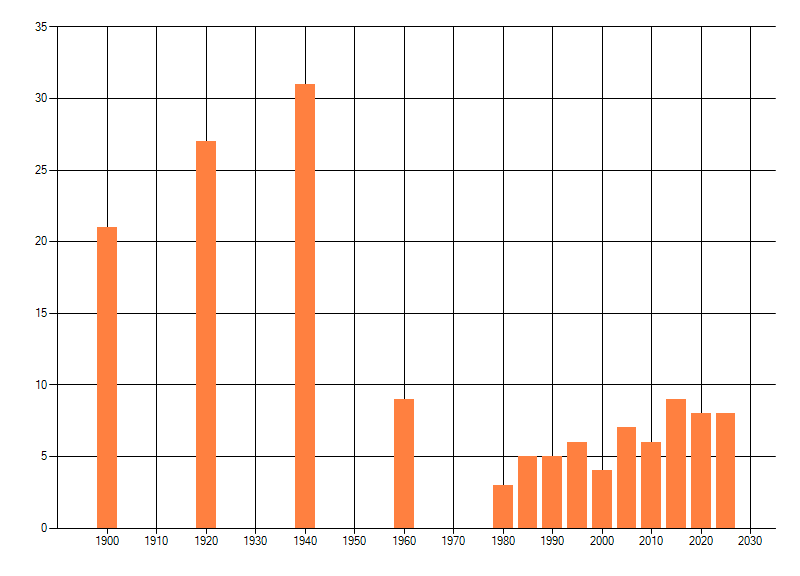 dus een trend in verspreiding kan hier niet direct uit worden afgelezen. Het opgegeven jaartal is het eerste jaar van de