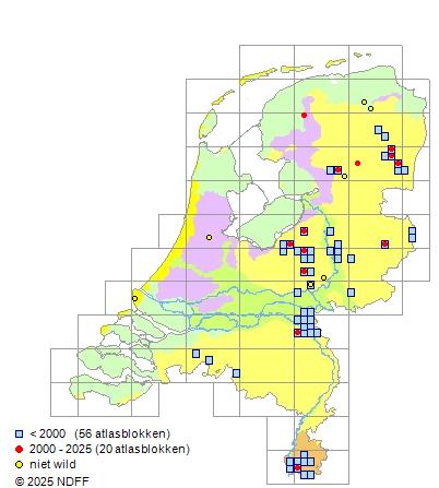 CC BY-NC-SA 3.0 NLVerspreidingNederlandZeer zeldzaam in Zuid-Limburg, tussen Nijmegen en Gennep, op de Veluwe, in Twente en in Drenthe.