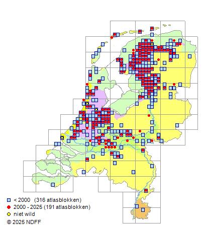 Bron: FLORON - Gemodelleerd op basis van waarnemingen uit de NDFF voor de periode 2000-2021.